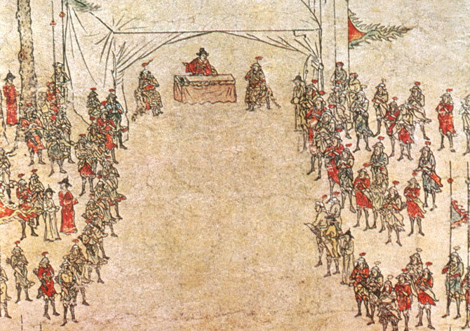 秀吉の朝鮮出兵の際、明から朝鮮に派遣された応援の軍隊(古い中国の絵巻物の一部)