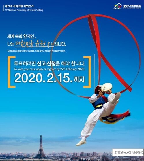 【ソウル聯合ニュース】韓国で4月15日に実施される国会議員総選挙の在外選挙人登録の申請と国外不在者申告書の提出が2月15日に締め切られる。