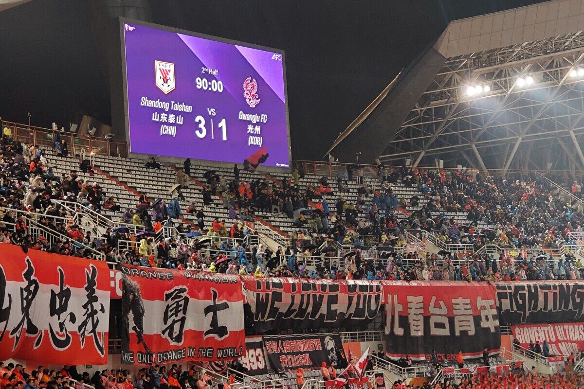 記事によると、韓国のSNS上で同日、11日に中国で行われた光州FC(韓国)と山東泰山(中国)の試合の観客席の様子を写した写真が拡散した。写真には、山東サポーターが遠征サポーターに向けて全元大統領や北朝鮮の金日成(キム・イルソン)主席、金正恩(キム・ジョンウン)総書記の写真を掲げる様子が写っていた。