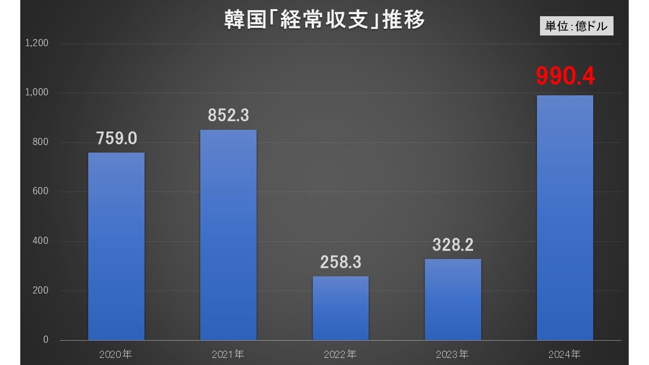 2025年02月07日に『韓国銀行』がデータを公表しましたので、2024年の国際収支統計が締まりました。