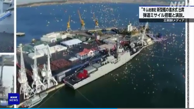 北朝鮮のメディアは、軍の記念日にあたる25日、キム・ジョンウン(金正恩)総書記が西部ナンポ(南浦)にある造船所を訪れて、新型の多目的駆逐艦の進水式に出席したと、26日伝えました。