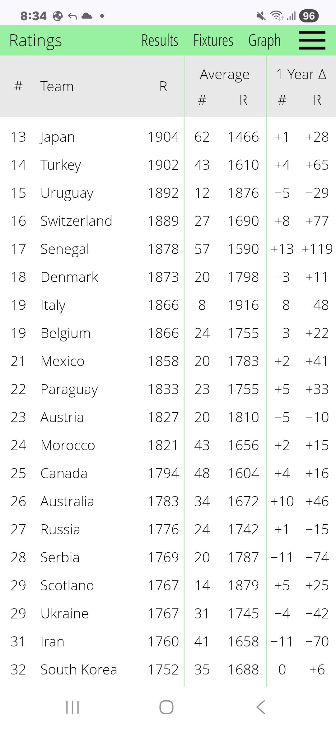 FIFAランキングってなかなか下がらんよな