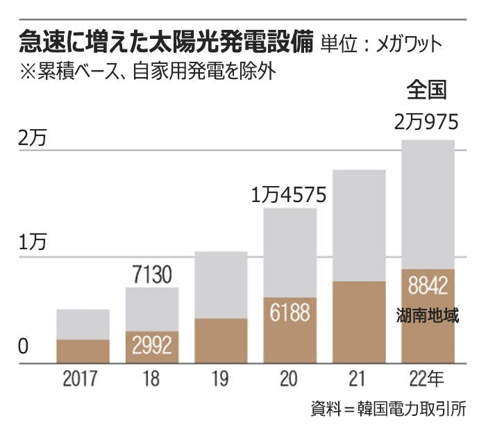 韓国政府は4月1日から日照が多い日には過剰発電を防ぐため、湖南地域で太陽光発電を強制的に削減することにした。