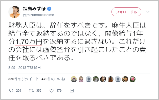 福島みずほ議員のツイート